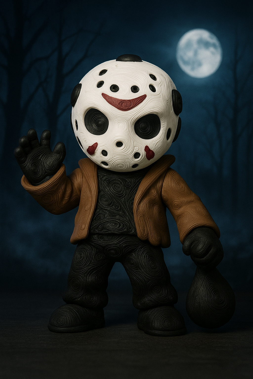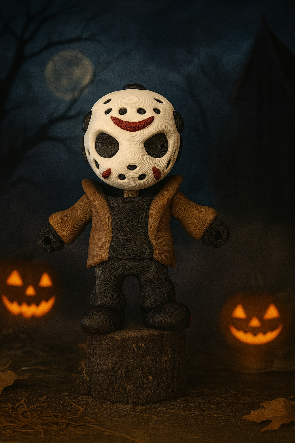 Bring iconic slasher vibes to your collection with this 3D printed Jason-inspired figurine. Featuring the legendary hockey mask, brown jacket, and eerie black detailing, this collectible is perfect for Halloween décor, horror fans, and unique geeky gifts.