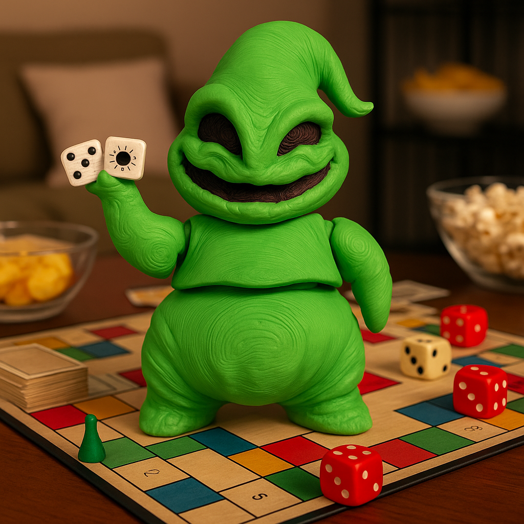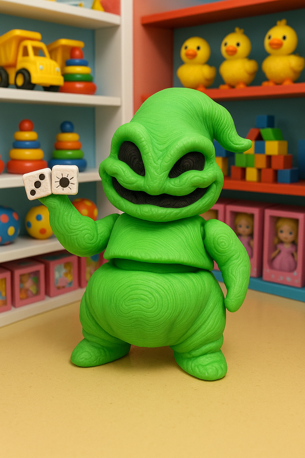 Add a touch of spooky fun to your collection with this 3D printed Oogie-inspired figurine, complete with a mischievous grin and dice in hand. Perfect for Halloween décor, board game nights, or collectors of unique geeky treasures, this figure brings both charm and eerie character to any space.