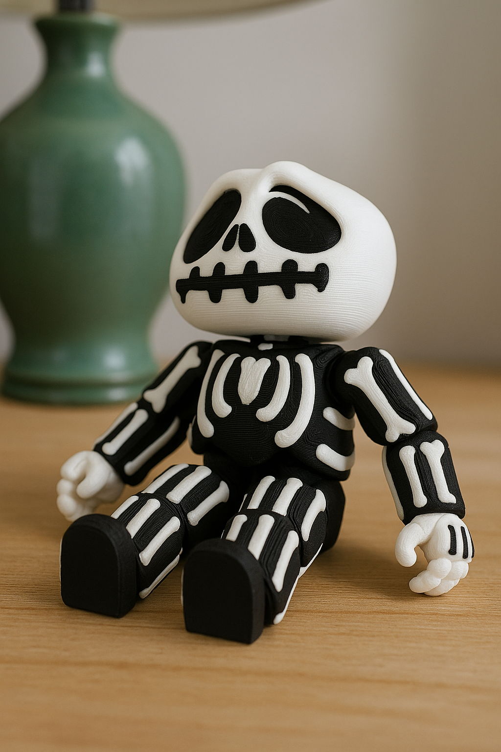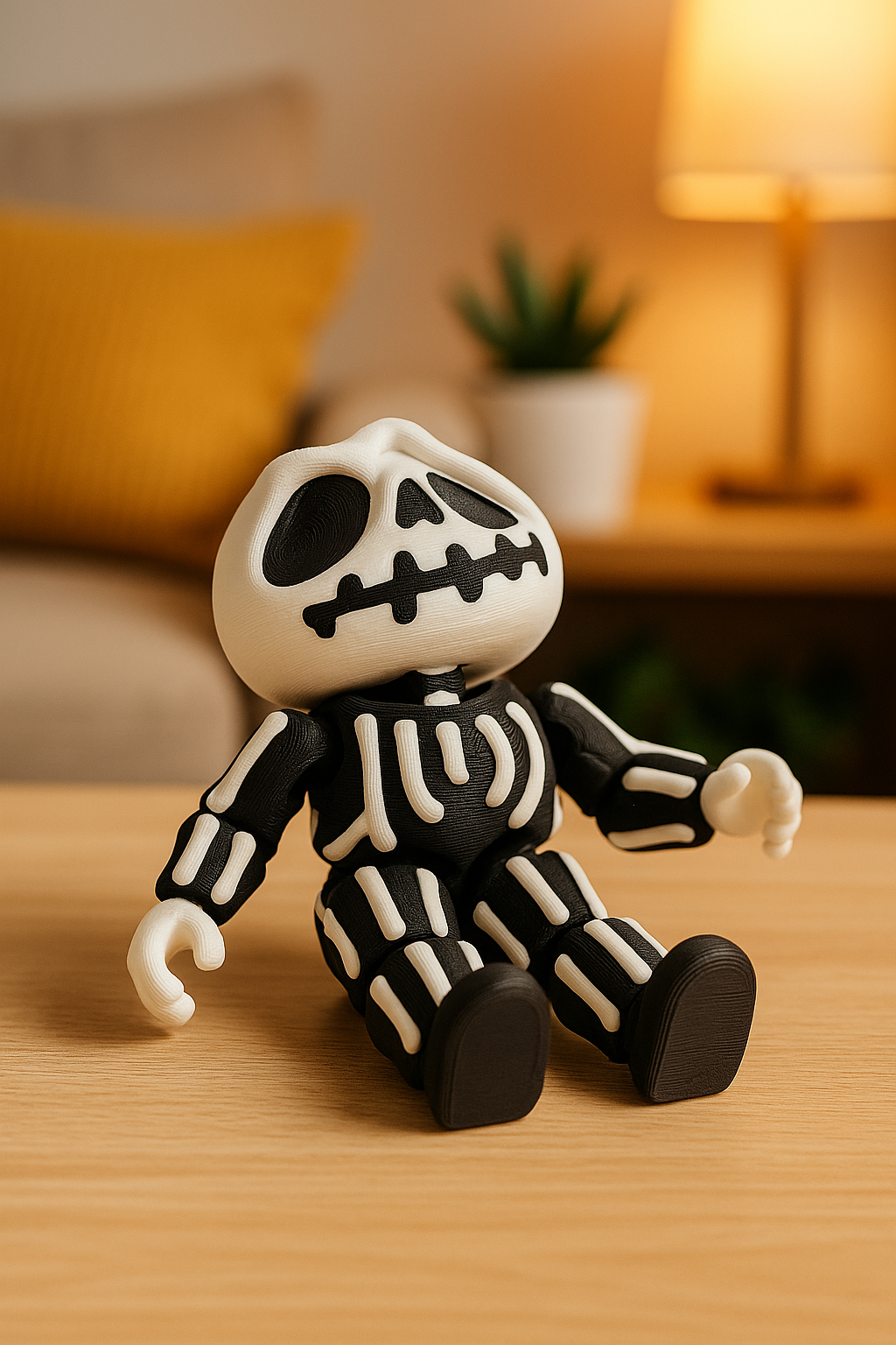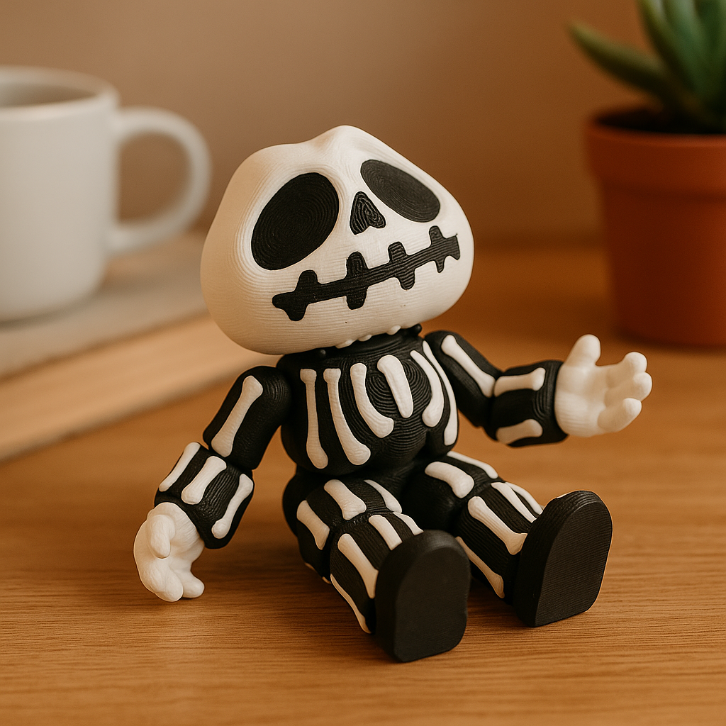 Printed in durable black and white PLA, the articulated skeleton is perfect for Halloween decorations, collectibles, or as a quirky desk pet year-round.