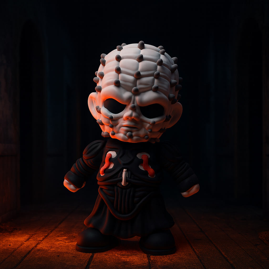 Step into the world of dark horror with this Pinhead Horror Collectible Figure. Featuring the iconic grid-marked head with embedded pins and a black detailed outfit, this stylized collectible captures the chilling presence of one of horror’s most infamous icons.
